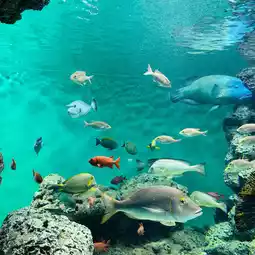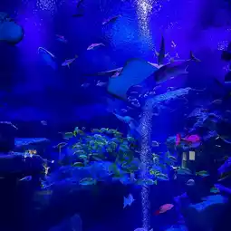 When you walk into the giant aquarium located in the COEX shopping mall, you will be greeted by a dream-like underwater wonder. I saw a huge giant viewing tank occupying the center. Behind the transparent glass wall is a sparkling sea-blue ocean world. Thousands of colorful tropical fish are playing and swimming in it, as if they are alive. 3D underwater picture.