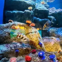 We walked slowly along the surrounding circular trails, and there were constant surprises along the way. I saw a transparent viewing tunnel above my head that seemed to be traveling through the air. Various small and cute tropical fish were swimming in front of my eyes. Watching it up close makes people feel like they are in the sea. Further forward, there is a corrugated aquarium with many strange molluscs hanging in it. They seem to be dancing gently with the water flow, which is quite interesting.