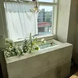 Aquarium? Bathtub? A super cute flower cafe💐