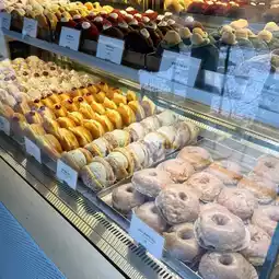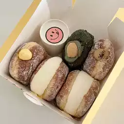 찰떡쑥크림 도넛 3900 won Mugwort cream donut The donut has mugwort cream and rice cake inside, and it's delicious