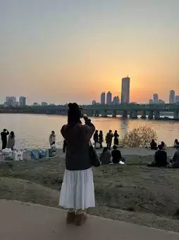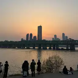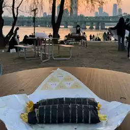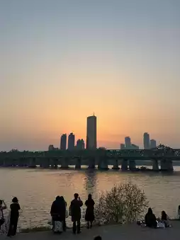 Nodeulsam is a small island park in the middle of the city where Koreans like to have a picnic and watch the sunset. Around the park, there are shops selling fried chicken, kimbap, and pizza before sitting by the river and enjoying the sunset. 🌅
