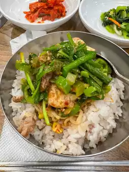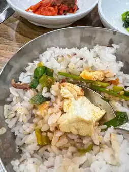 It's a meat restaurant, but they mostly serve doenjang jjigae for lunch, so the turnover is fast and I didn't have to wait that long to get in.
