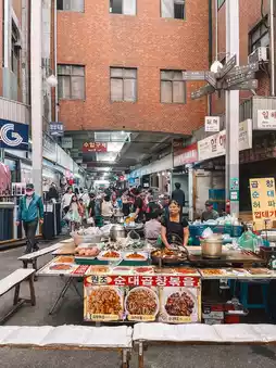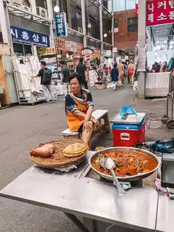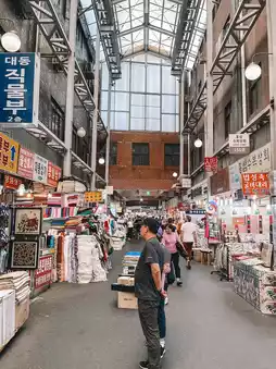 Well known for its fabrics stores, this market also offers diversity of food stalls including seafoods and local cuisines. So much to do here, as a tourist, I would recommended buying fabrics and trying a hanbok a traditional korean dress.
