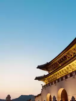 The sunset at Gyeongbokgung Palace is incredibly beautiful, and I only left the palace slowly as the staff urged us to leave after the sun had set