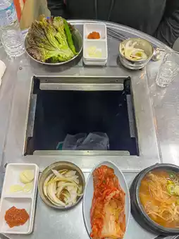 For some reason, there were two types of soup for the banchan, but it was delicious and I was happy that they also had gyeran-jim ๐