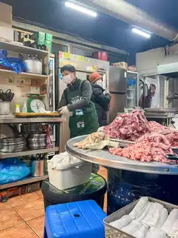 The meat was being butchered in the restaurant, which was quite interesting ๐