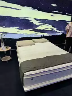 At the Starry Night Mattress Pop-up Store, you can sit or lie down on a bed with a concept that captures the charms of Seoul and Jeju.