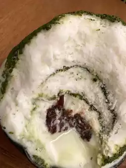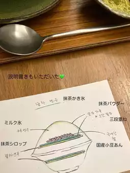 Fluffy milk ice with a solid matcha powder.