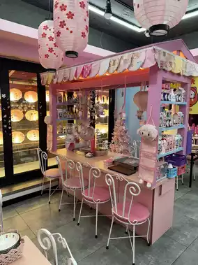 The interior of the restaurant is filled with a Japanese atmosphere and pink miscellaneous goods, giving it a very cute atmosphere🩷