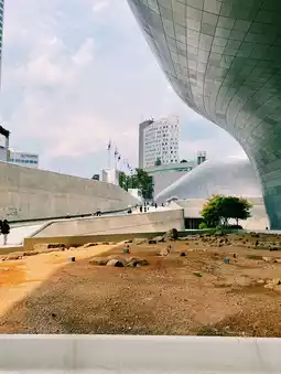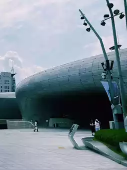 Dongdaemun Design Plaza (DDP) is an iconic modern building in Seoul, South Korea, designed by Toyo Ito. Known for its streamlined appearance and avant-garde design, this modern structure serves as a hub for Seoul's urban culture and design.