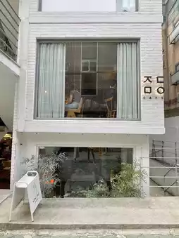 작당모의 (zakdangmoi) is located in Yeongnam-dong, Seoul, and mainly serves desserts and drinks. The coffee shop facade is very eye-catching, with white exterior walls and large floor-to-ceiling glass windows, which is very beautiful. The interior decoration is mainly wood, with soft lighting, creating a warm and comfortable atmosphere.