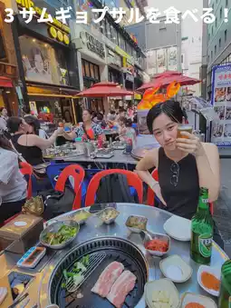 Myeongdong, Seoul's downtown! I ate samgyeopsal at a street stall here!! Eating samgyeopsal outside was one of the purposes of this trip☺️I'm very satisfied!