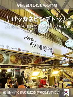 There are many shops in Gwangjang Market, but the most famous one is "Pakkhanae Bindae Tteok"