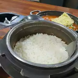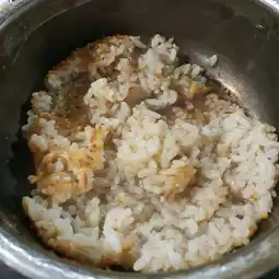 The rice is cooked in a pressure cooker, and there is one pot for each person, so after serving the rice, all you have to do is add water, put the lid on, and the nureunji is done!