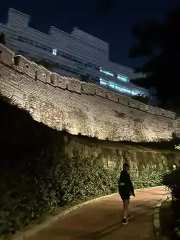 A 10-minute walk from Hyehwa Station on Seoul's Subway Line 4 will take you to the lower entrance of Naksan Park. It was used as a city wall for over 500 years, from 1396 to 1910. I continued climbing this wonderful slope and stairs for about 20 minutes, while people were climbing to the top by taxi or car. 💨 Naksan Park is also famous as a filming location for Goblin, and the night view from the park was fantastic and beautiful. 🌃
