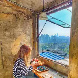 The entrance on the first floor is like a counter bar, and if you climb the thin iron stairs you will reach the rooftop, and the view from there is the highlight of this shop😍