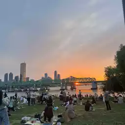 You can take a bus to Nodeul Island, and there's a bus stop right in front of the island. During pleasant weather, like in autumn or spring, many people come here for picnics, walks, and exercise. Nowadays, more people are getting to know about this place. Besides the garden area where you can see the river and have picnics, there are also cafes, restaurants, a library, and free spaces to relax and unwind.