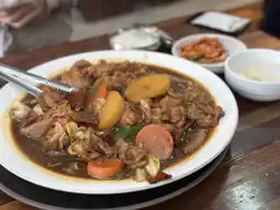 The food section mainly offers traditional Korean dishes such as kimbap, tteokbokki, dumplings, and pajeon (Korean pancakes).