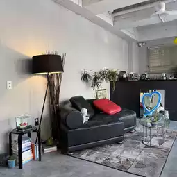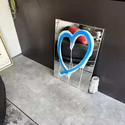 The interior furniture and decor create a stylish and relaxing atmosphere. 💙 Heart-shaped accessories are also on display.