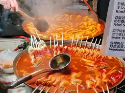 Myeongdong is famous for its street food, where visitors can enjoy a variety of authentic Korean food such as fried chicken, dumplings, spicy rice cakes and various desserts. After shopping, there are many delicious options here, allowing you to enjoy the local flavor while enjoying shopping. 😋