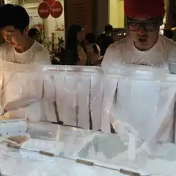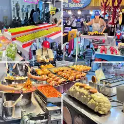 I started with fresh, juicy fruit cups bursting with flavor. The strawberries and Korean melons were so sweet and refreshing! Then came the desserts—soft, fluffy hotteok (sweet pancakes) and ice cream-filled fish-shaped buns that melted in my mouth. Every bite was heaven!