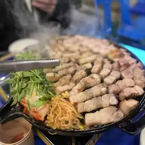 And you can pick up everything except the meat, such as lettuce, seri, and namul, and eat as much as you like! ️🙄