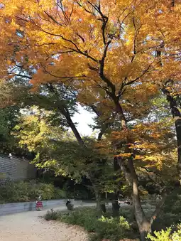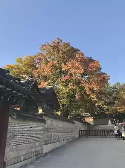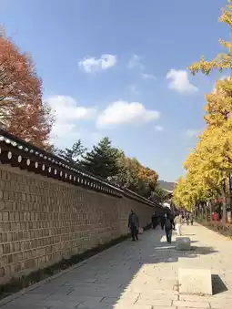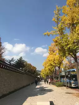 There are many clothing rental shops near Gyeongbokgung Palace. Even if you don’t go into Gyeongbokgung Palace, just taking pictures outside its stone walls is already a great experience🗿! The stone wall is also one of the attractions. There is also a row of ginkgo trees and red leaves next to the stone wall. You can take good photos anywhere!