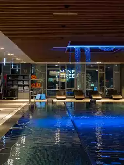 The hotel's lobby was clean, the pool was stylish, and there was a nice bar at the front desk, making it a great hotel for a staycation.