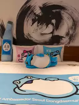 There were Jinro characters everywhere, on pillows and cushions, and it was very cute.