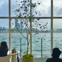 Near Dongjak Bridge on the Han River, there is a cafe called The River with a wonderful dock atmosphere.