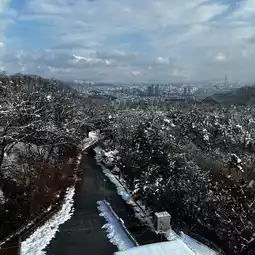 The views from the tower were more spectacular than ever, with the snow adding a layer of tranquility to the panoramic sight of Seoul. The white-covered trees and snow-capped landscape created a striking contrast against the city’s skyline, making it feel like stepping into a living postcard.