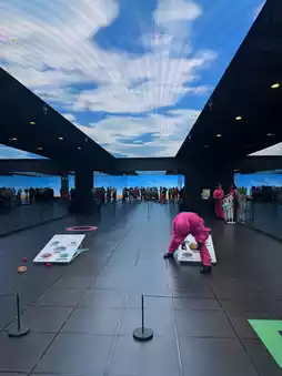 The interior of the pop-up store meticulously recreated scenes and characters from the drama, making it feel like you were on the actual set. At the photo zone, you could take pictures with the giant doll, a symbol of Squid Game, creating special memories. Although there was a bit of a wait, it was worth it. Depending on your success with the dalgona game, you could receive merchandise, and you could exchange collected stamps for souvenirs like tumblers and air fresheners.