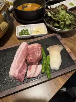 Samgyeopsal, Moksal, Cold Noodles, and Doenjang Jjigae