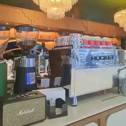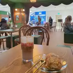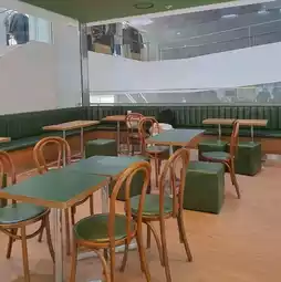 It's a modern yet cozy cafe with a great combination of wooden and green interiors. It's a comfortable space to read a book alone or work on a laptop.