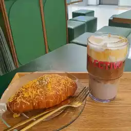 Signature Menu: Rich yet soft latte. The chewy cream latte is especially delicious. The signature menu is salt bread and scones, and the salt bread is really chewy and stretchy like cheese.