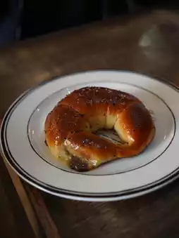 The freshly baked crispy and fluffy salted bread is lighter than bagel dough, so it's easy to eat.