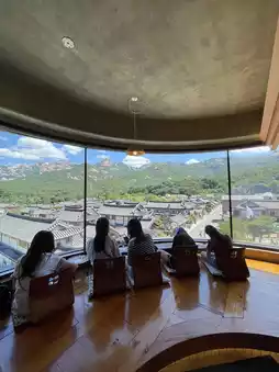 Finally went to the most wanted to go to Seoul cafe this 1in1Jan is the best place to see Eunpyeong Hanok Village, in fact, the whole building has restaurants and coffee shops on different floors The location is of course a 90-degree full floor-to-ceiling glass photo spot