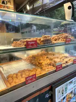 💞Recommendation: Mangwon Market is a bit farther than Gwangjang Market, but it is less crowded and the prices are more reasonable. Many locals visit this traditional market. Outside Mangwon Market, there is a famous bakery called Ugly Bakery 🥯 that sells various types of bread. If you are interested, go early as there might be a queue. 🌅At dusk, you can take away snacks and walk to Hangang Park to chill with friends over the weekend🌟🌟. Many stores in Mangwon Market are closed on Mondays and Tuesdays, so it's better to visit on weekends for more options🌟. Don't worry about the rain as the traditional market has a roof.
