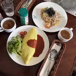 In addition to the signature omelet rice, Kagome Napolitan, and Katsu Sando, they also sell various drinks such as melon soda