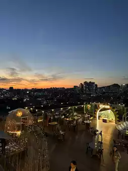 I went to the rooftop and wondered if there was a good seat? I searched for it, but there were more than 100 seats on the large site. I got the best seat at the front where I could see the sunset! There were many couples sitting on the sofa seats in the front. You can also see Namsan Tower from this rooftop, and it's a 360-degree view of Seoul! The lights are beautiful even after the sun goes down, and I enjoyed the view for a long time even though I only had one beer! The large pizza also looked very delicious... 🍕 Please go and check it out! 📍NOOP 1-206 Yongsan-dong 2-ga, Yongsan-gu, Seoul Special City #Korea Travel Information #Asia Travel Records #Overseas Travel Records #Korean Cafe #Korean Gourmet #Korean Cafe Tour #Liberation Village #0 Yen Trip January 2025