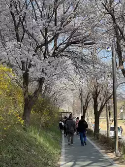 Yangjaecheon is a river that flows through the southern part of Seoul. It is a popular destination for walking, cycling, or relaxing in the beautiful natural surroundings. Especially in the spring, the area is full of vibrant flowers and lush greenery. The park offers stunning and refreshing views, with trees and plants growing abundantly. Along the riverside paths, various flowers such as cherry blossoms and peonies bloom, adding to the beauty with their fragrance and the cool breeze from the river. This makes it an ideal place for nature walks and photography.