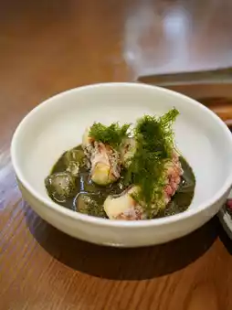 Signature dishes include Korean beef yukhoe with a hint of truffle, sea urchin capellini, and Korean-style gnocchi and fried octopus in seaweed sauce.