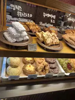 There are many items to choose from. I chose chocolate biscuits. The texture is very dense. The drinks are also delicious. The coffee is not bitter.