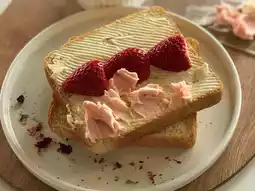It's also fun to top the toast with your favorite fruit and pink cream cheese!