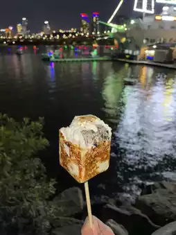 There was a drone show at the Hangang Park when I visited, so I went to check it out. The drone show was spectacular, drawing in huge crowds of both locals and tourists. After the show ended, many people sat on the banks of the river to eat supper - primarily instant food like ramyeon and fried chicken. I bought a really special marshmallow ice cream for myself!