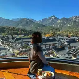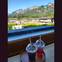 There are several Korean tea houses and Hanok-style cafes here. The one with the best view is the 1인1잔 per person cup. The building is 5 stories high including the rooftop, and you can see the entire Hanok complex and Bukhansan Mountain at a glance.