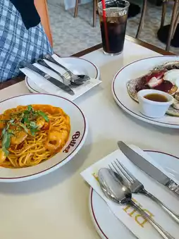 I ordered pancakes and pasta, and both were delicious. ㅠ… I ate everything and enjoyed it so much…