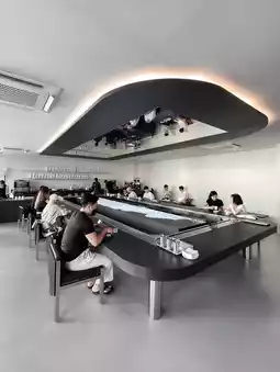 Gwehdo Yeonhui is located on the 1st & 2nd floor with a simple space, the highlight is the LED display "table" with images of waves crashing on the shore as if they were on the sea.