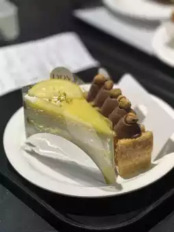 The millefeuille here is made up of overlapping pies like dominoes, so it's very easy to eat!