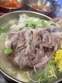 Located in a residential area just a 5-minute walk from Ttukseom Station, next to the popular area of Seongsu, the Kalguksu restaurant [Byeongui Dambaek Bone Cut Noodles] is a popular restaurant that is always full of locals. When I visited around 2pm on a Sunday, the restaurant was almost full with local Koreans. The menu included bossam, pork cutlet, and soup, but I chose the recommended bone kalguksu. I was surprised when the bowl was brought to me! There was a big piece of meat on the bone sticking out! The meat was so tender that it fell off the bone. Delicious!! There were three pieces of meat on the bone of this size. I was so absorbed in eating the meat that I forgot that I had noodles. A mysterious mustard vinegar soy sauce-like sauce was served separately, and you can add this to change the flavor. You can enjoy the refreshing change of flavor. There was also mixed noodles on the menu, so I would like to try that next time! It was a recommended restaurant that I would like to come back to ^ ^🏖️Atmosphere/Facilities: Cleanliness ○ Atmosphere ○📍Location: Ttukseom💰Price per person: About 12000w